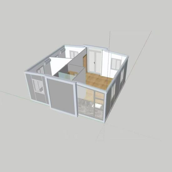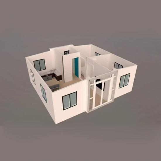 Una casa prefabricada casa contenedor Con dos dormitorios, baño y cocina, puede ser una estructura modular expandible que se expande para mayor espacio y se pliega para facilitar su transporte. Estas casas están construidas sobre una estructura de acero de alta resistencia y diseñadas para una instalación rápida, que suele tardar solo unas horas en ensamblarse una vez entregadas. Entre sus características principales se incluyen opciones de personalización para la distribución, los sistemas eléctricos y las ventanas, así como resistencia a la intemperie, al fuego y a los sismos.