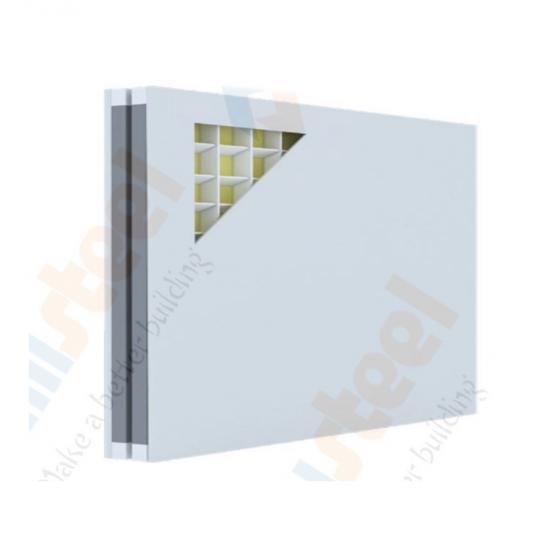 La placa limpiadora de rejilla de vidrio y magnesio está fabricada con placas de acero en ambos lados y un marco de perfil conformado en frío. El material del núcleo puede ser lana de roca inorgánica o lana de roca sándwich con placas de vidrio y magnesio. El producto ofrece una superficie lisa y elegante, aislamiento acústico, aislamiento térmico, conservación del calor, sismorresistencia, buen rendimiento ignífugo, dimensiones geométricas precisas, fácil instalación y ahorro de tiempo.