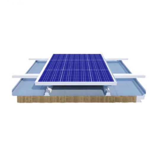 El robusto perfil metálico con junta alzada garantiza una integridad estructural duradera y resistencia a la intemperie. El diseño integrado protege los componentes fotovoltaicos, lo que resulta en un sistema fiable y de bajo mantenimiento que proporciona energía limpia durante décadas.