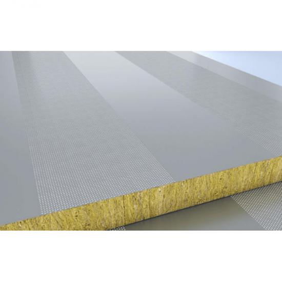 Chapa de acero galvanizado revestida de color (panel exterior) + Lana de vidrio + Tejido no tejido + Chapa de acero galvanizado revestida de color perforada (panel interior)