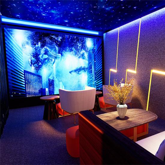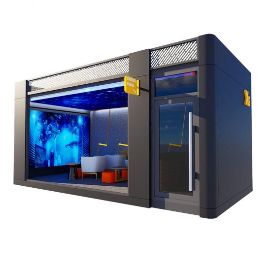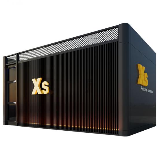 Esta minicasa prefabricada de lujo está diseñada como un cine privado exclusivo. Ideal para cines en casa en el patio, suites premium para invitados o salas de entretenimiento independientes, la Cabaña Apple ofrece una experiencia audiovisual inmersiva en un espacio compacto y de alta gama, perfecto para propiedades residenciales y comerciales.
