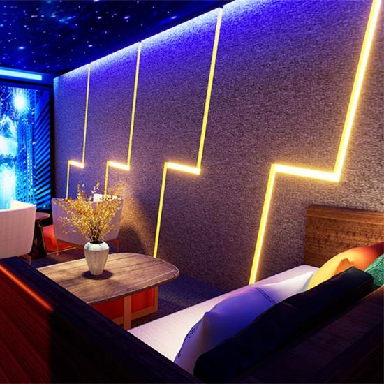 Esta pequeña casa de lujo cuenta con un proyector de alta definición integrado y paneles de pared acústicos, que brindan una experiencia audiovisual inmersiva con calidad cinematográfica dentro de un espacio compacto y privado.